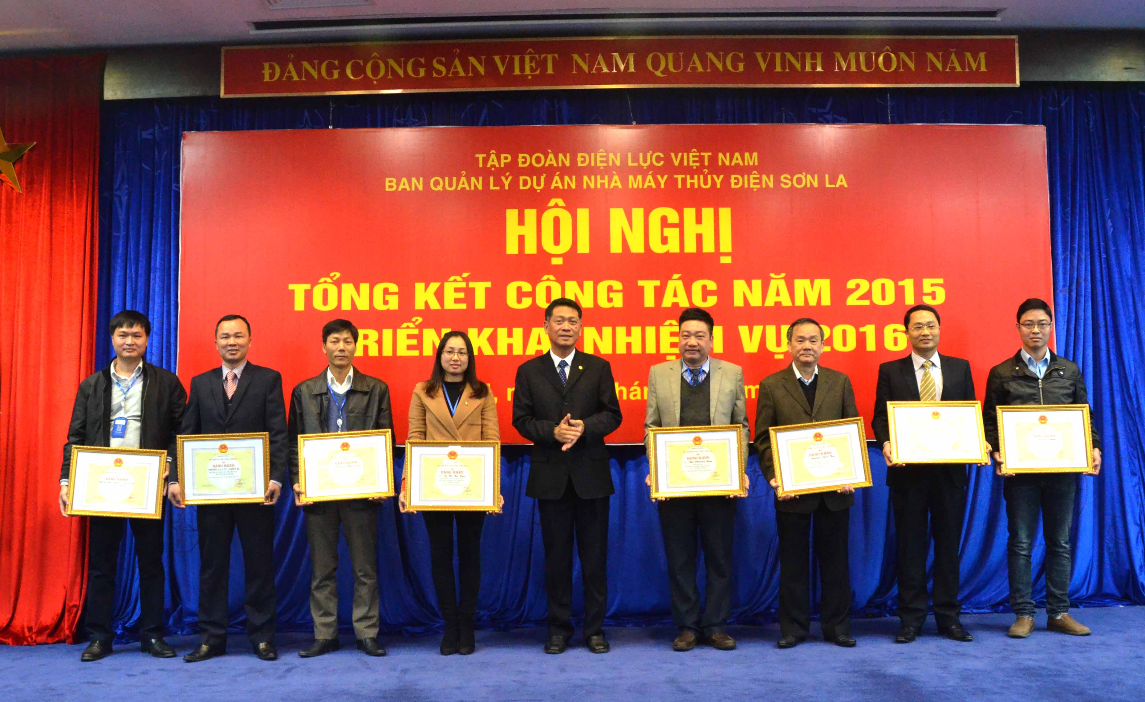 Phó Tổng giám đốc EVN Nguyễn Cường Lâm trao Bằng khen của EVN cho những tập thể và cá nhân có thành tích xuất sắc trong năm 2015